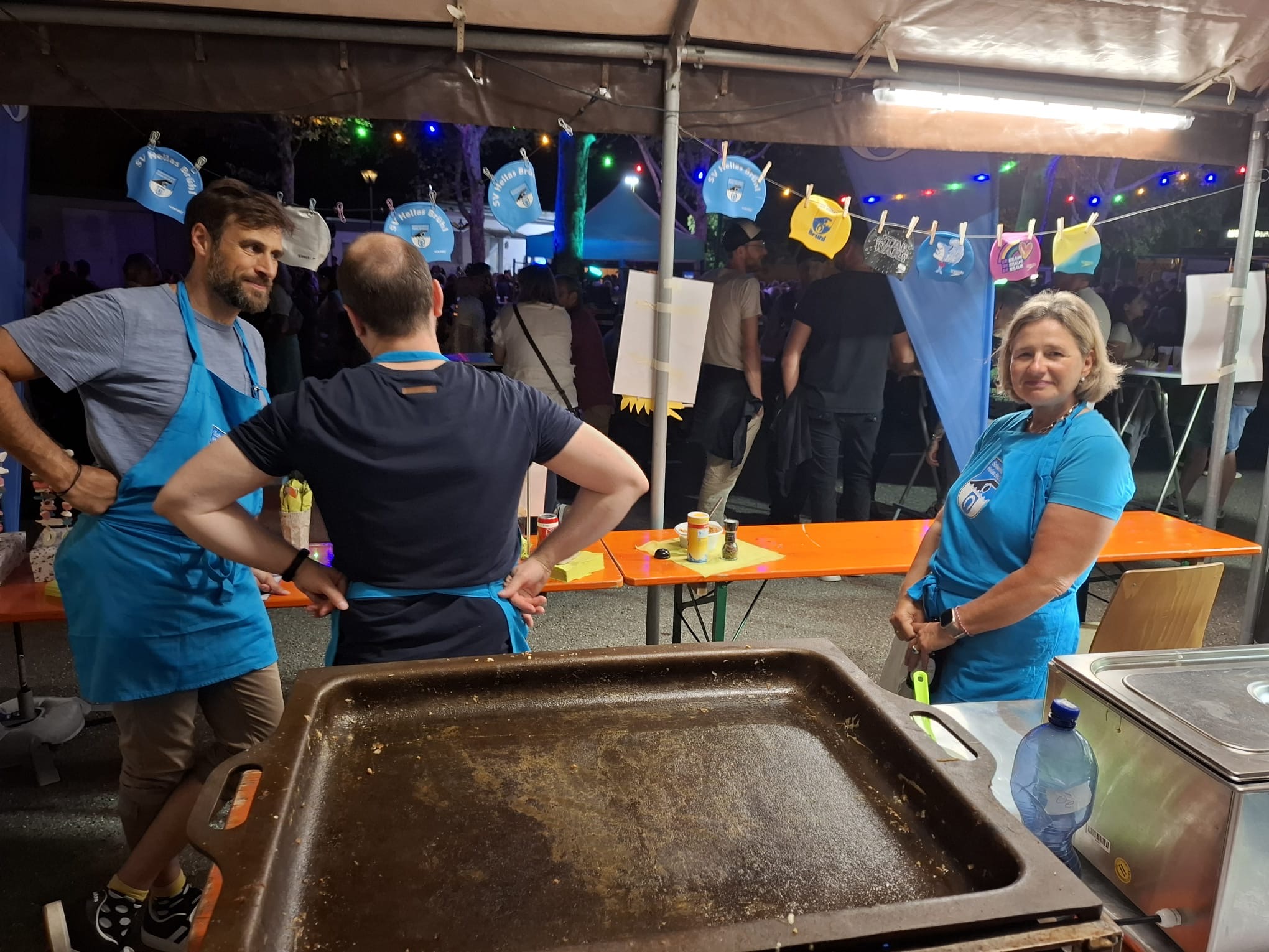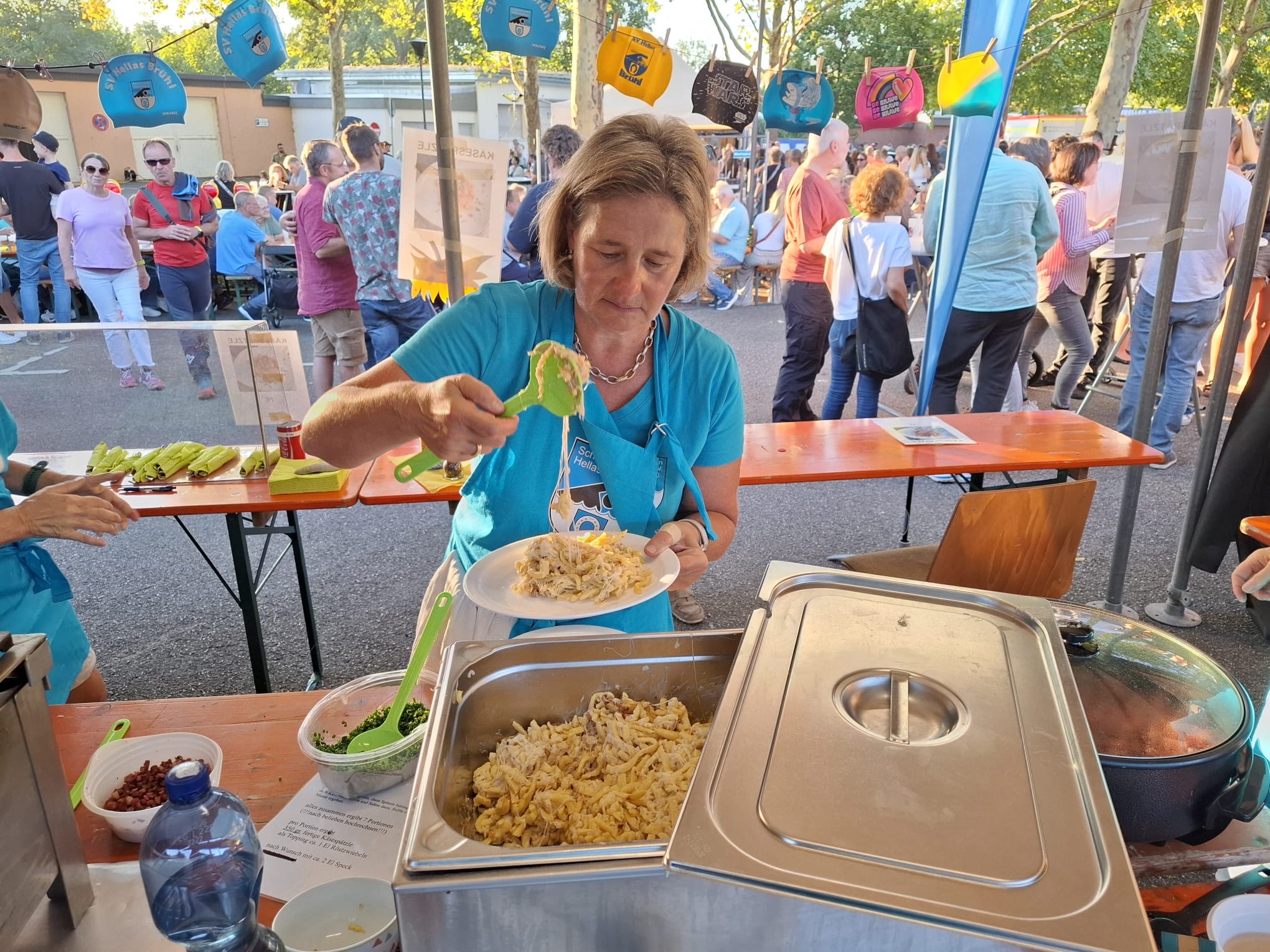 Vergangenes Wochenende (19.-21.09.25) fand die Jubiläumsfeier der Freiwilligen Feuerwehr Brühl statt. Wir konnten dabei einen Stand mit Käsespätzle betreiben. Für den SV Hellas war es Premiere, bei solch einem Fest mitzuwirken und es hat sich gelohnt. Alle Betreiber waren begeistert von der Zusammenarbeit untereinander, es war ein geben und nehmen. Die über 20 Helfer in sechs Schichten hatten viel Spaß beim gemeinsamen Vorbereiten, Kochen, Verkaufen und auch Tanzen zum Musikprogramm.