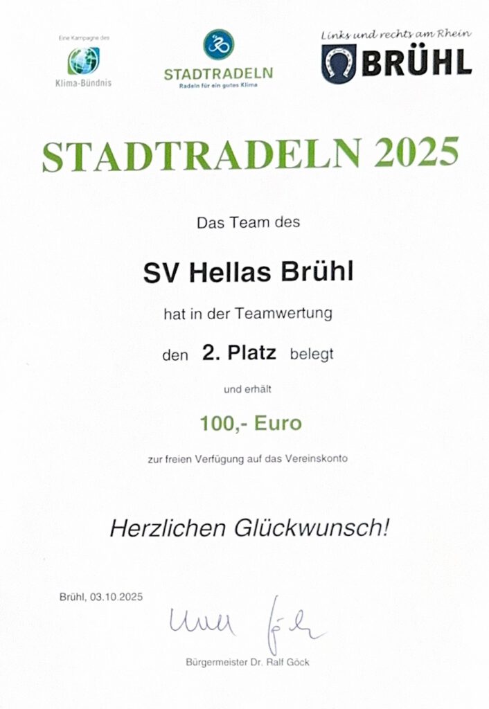 Für den SV Hellas Brühl starteten Claire Zhang, Elisabeth Müller, Nele Schneider, Luca Goldhorn, Julius Goedecke, Mattis Himmelsbach, Lino Kettenmann, Moritz Old, Robin Schneider, Tabea Bethmann, Linda Keitel, Iva Teppke, Zarah Kirmis, Theo Kraus, Yaroslav Chesnokov, Laurenz Haane, Lotta Keitel, Zoe Kettenmann, Lasse Himmelsbach, Lukas Hube, Theodor Krause und Lisa Ros.