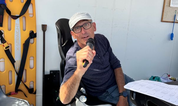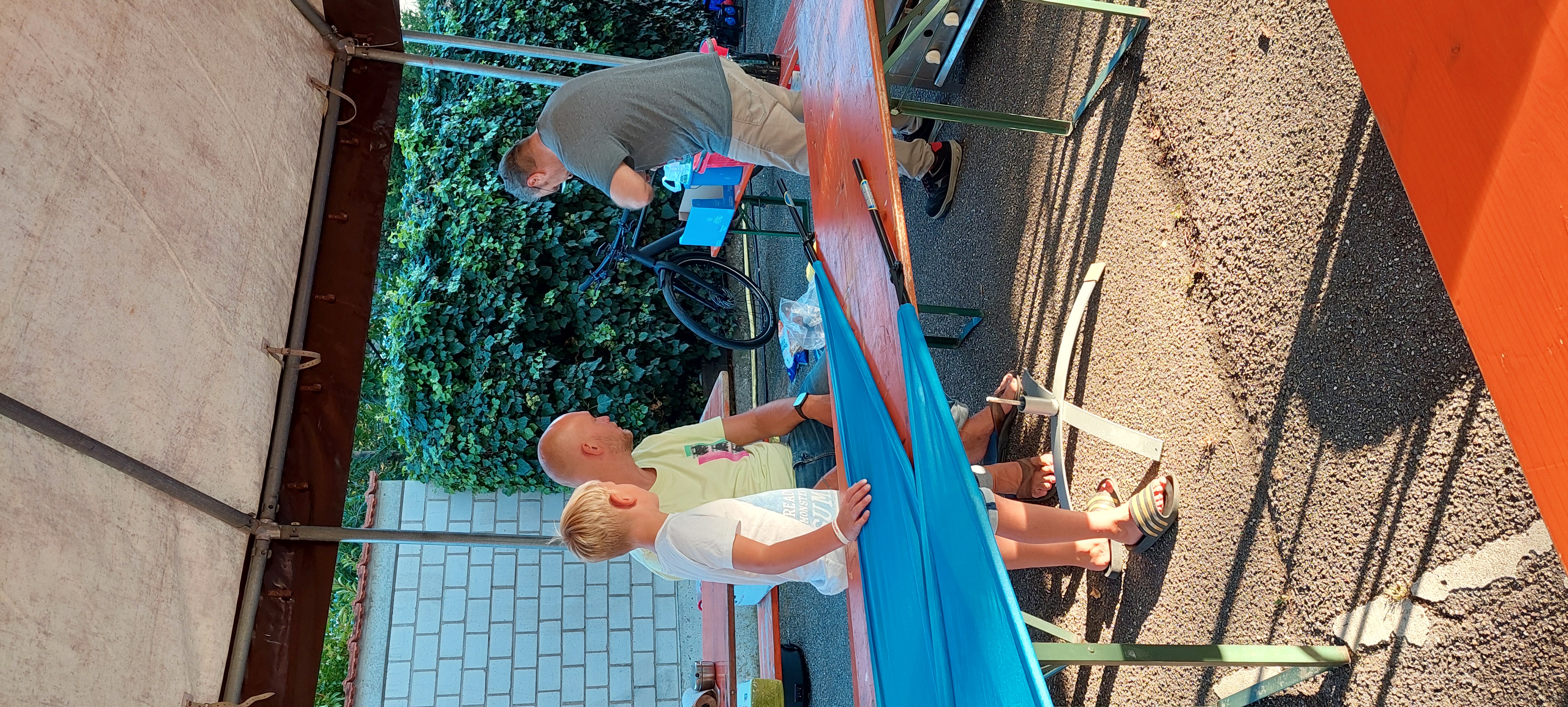 Mit Badehose gings an den Frühstückstisch und anschließend schaute er den anderen SV Mitglieder beim Triathlon zu.