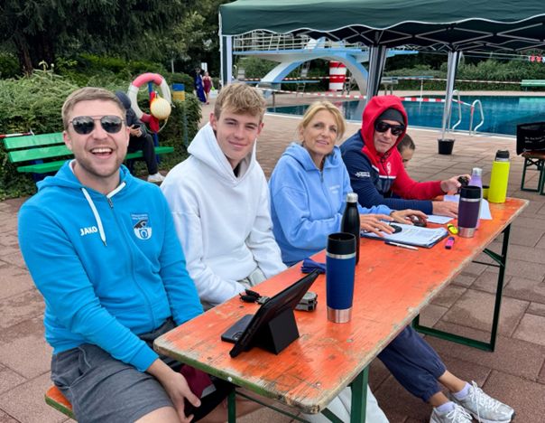 Ein besonderer Dank geht an unsere Kampfrichter Anna Schneider, Jörg Himmelsbach, Roland Monojlovic, Thorsten Haane und Alexandra Schmidt, welche sich bei den hohen Temperaturen für unseren Verein an den Beckenrand gesetzt haben.